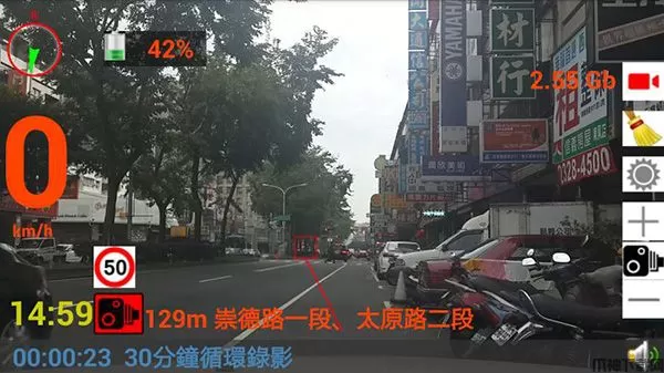 1、进入导航画面后按下右边摄影图标即开始导航及行车记录,记录方式为
