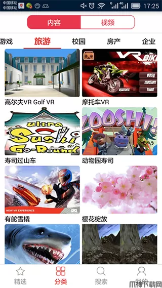 4.版本分为四个模块分别为精选,分类,搜索以及个人,其中精选为用户提供的热门搜索,其中分类为各个门类的详细介绍。