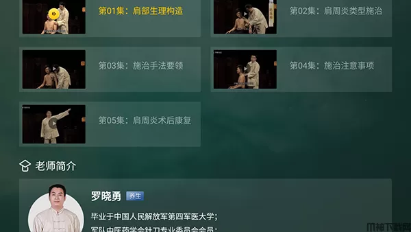 4、播放详情页面中可以切换剧集,以及查看真人操作老师的简介信息
