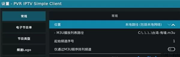 4、本地m3u:“常规”-“位置”设为“本地路径”,“M3U播放列表路径”找到本地m3u文件。