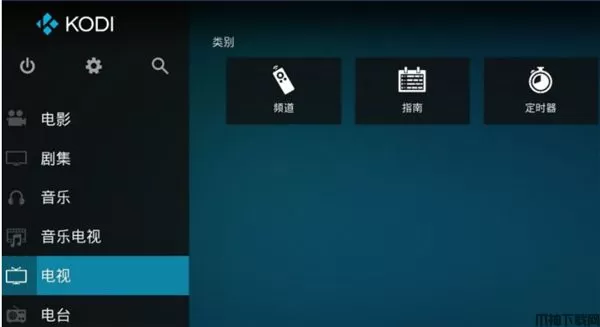 6、回到Kodi首页,选择“电视”-“频道”。