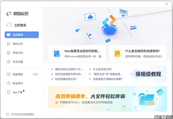 爱思远控电脑版是一款非常好用且实用的优秀远程控制软件,拥有强大的功能可以通过远程操作其他电脑完成各种各样的程序运行并在控制对方电脑过程中可以使用快速录屏,截屏等重要功能。另外提供了稳定可靠的连接方式。用户只需在目标电脑上安装该软件接着获取连接码然后在自己的电脑上输入连接码即可建立连接,而且也支持iOS、iPad、Android手机设备与Windows主机设备之间远程控制,以及具有远程办公远程管理监控电脑等功能。