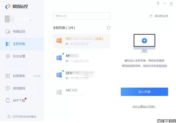 1.登录相同的爱思账号后,先将主机加入列表。当我们需要快速对某台设备发起远控时,需要控制的设备也加入列表。