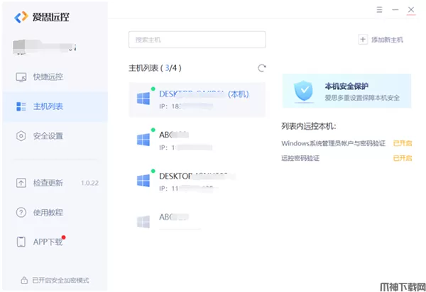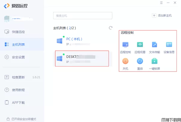 (主机和被管理的其它主机都需安装爱思远控并登录相同爱思账号。)
