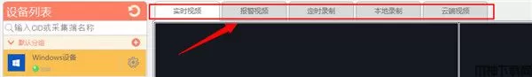 在我们的主界面中,可以看到,有五个TAB页面中包括:实时视频,报警视频,定时录制,本地录制,云端视频模块;