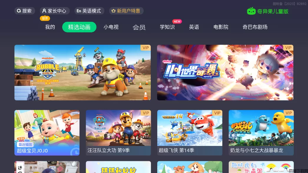 3.有小朋友们喜欢的《汪汪队立大功全集》《熊出没之怪兽计划》等全球热播动画,陪伴孩子快乐成长每一天;
