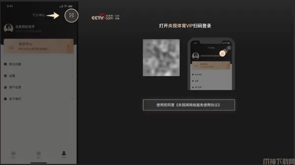 1、打开央视体育VIP app,在app我的页面内点击右上角扫一扫功能,扫描tv版上的登录二维码即可