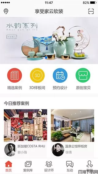 享受家app是由大千网络科技精心推出的一款集房屋设计、家居销售于一体的家装平台,它能够让你家的房子装修更加完美美观,使得用户购买家居更加方便快捷,房屋装修设计更加简单容易。用户可以在这里随时随地的带上VR眼镜在线观看房屋的设计方案,享受身临其境的看房体验。软件涵盖了欧式、中式、美式、现代、田园等流行的设计风格,用户能够360°全景观看房屋的每处细节设计,如果用户看中方案后,可以在线购买设计方案和家居产品。此外享受家提供的每个设计方案都有非常详细的设计说明,还有配套的家居产品价格,用户可以非常清楚的了解到每个设计方案的特点。