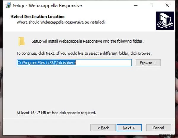 4、选择WebAcappella Grid安装位置,默认为C:\Program Files (x86)\Intuisphere。