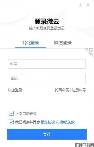 1、打开腾讯微云电脑版后需要账号登录,一般使用QQ邮箱登录比较简单