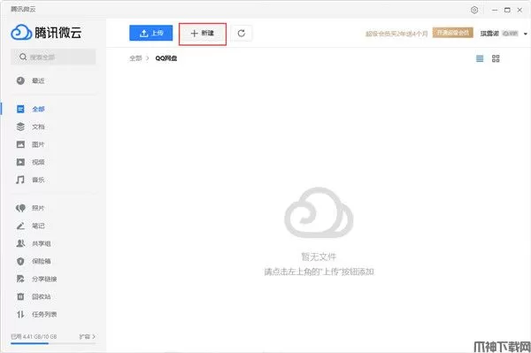 在微云主界面,微云网盘模块可以看到当前网盘的已使用容量信息,以及当前正在进行的同步信息