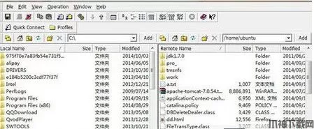 6、默认,左边部分为本地系统下目录,右边部分为远程linux下目录。选中左边文件右击鼠标,upload上传,也可以选择右边远程linux文件下载到本地