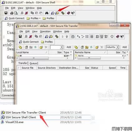 5、如果需要上传文件到linux服务器中,可以点击如下按钮,或者点击安装时在桌面的快捷方式