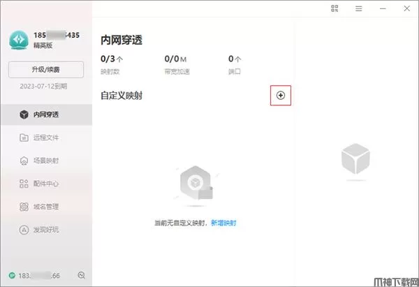 (2)打开花生壳客户端,在【内网穿透】界面中点击<+> 按钮。