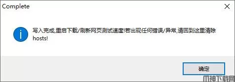 3、若不成功请自行排查原因,一般是安全软件阻止/hosts文件被修改过文件权限不让写入。