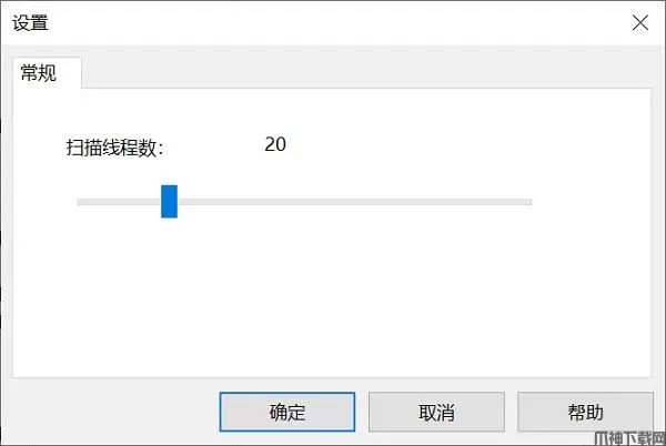 用户还可以调整扫描的并发线程,如需更改,请单击“设置”按钮,在弹出对话框中调整线程的数量即可,默认使用的线程数是100,如下图所示