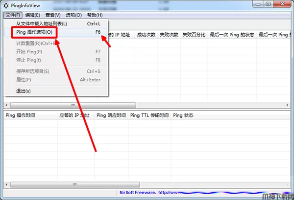 2、然后会弹出PING的选项界面,如果没有弹出,就点【文件】-【PING操作选项】,也可直接按F6,随后输入要PING的多个IP或域名,每行一个