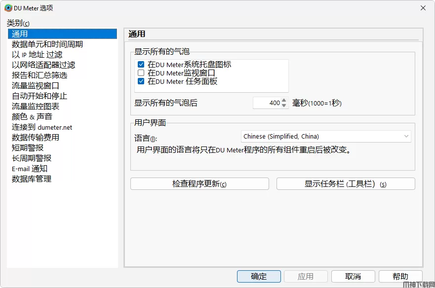 DU Meter中文版是一款专业的网络流量实时监控软件,可精确追踪计算机的上传与下载数据,并以图形化界面直观显示。DU Meter支持按日、周、月统计流量,自定义端口监测,并具备流量超限警报功能,帮助用户有效管理网络使用、排查异常流量,适合流量受限地区或有网络安全管理需求的用户免费下载使用!