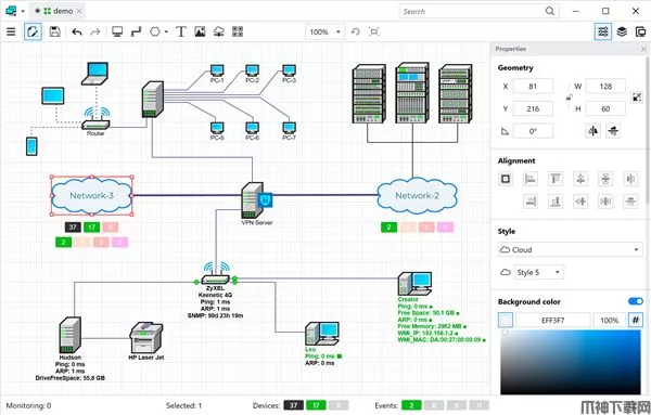 Algorius Net Viewer是计算机网络架构编辑器。它可用于以说明性方式显示服务器机房,计算机教室,贸易和办公中心,市区和其他位置的网络基础结构