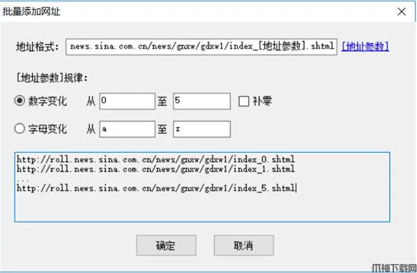 对于起始网址我们也可以批量添加或从txt文件导入,比如我们要采集前5页,也可以这样自定义五个起始页