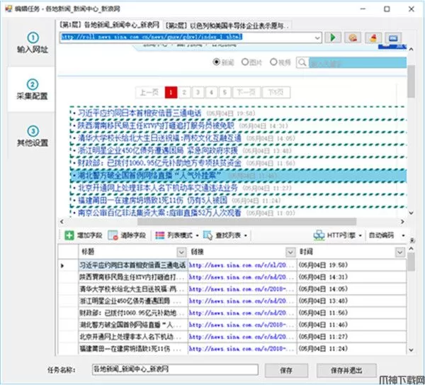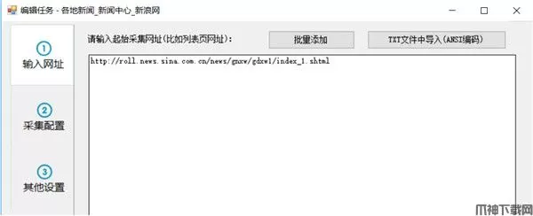 如果你要在一个任务中同时采集国内新闻里的其他子栏目,也可以把另两个子栏目列表地址复制进来,因为这些子栏目列表格式都是相似的,但为了便于导出或发布分类数据,一般不建议多个栏目内容混合在一起