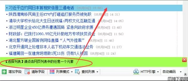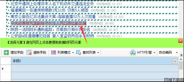 点击列表中任意一行中要提取的元素,比如要提取标题和链接地址,鼠标左键点击一下该标题即可