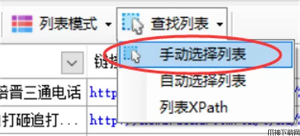 如果自动分析出的高亮列表也不是我们要采集的列表,那么我们就手动选取列表,要是想取消高亮显示的列表框,可以点击 查找列表,列表XPATH,把里面的xpath清空后确定即可