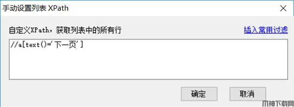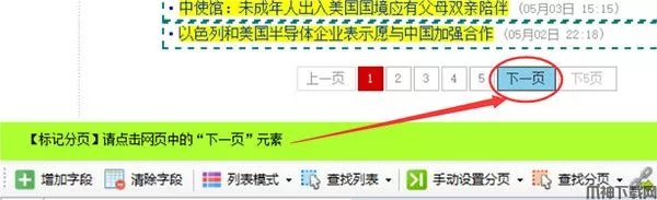 点击后会在网页下一页按钮上出现高亮的红色虚线框,至此成功标记了分页,如果要查看刚才设置的分页xpath,可以选择菜单中的分页XPath,即可看到该分页xpath,在这里也可以手动输入xpath进行设置