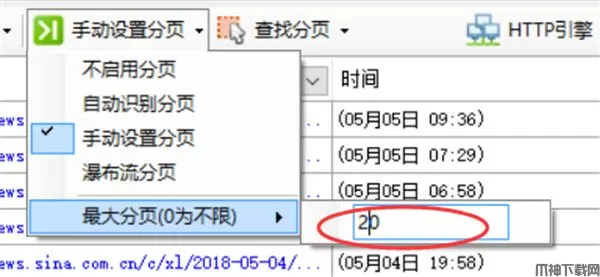 有些网页需要将滚动条拉到底部才能进入下一页,例如今日头条、知乎等网站,在菜单中选择瀑布流分页即可启用该分页,使用瀑布流分页采集时,页面会自动滚动到底部,直到分页完成或达到指定的分页次数