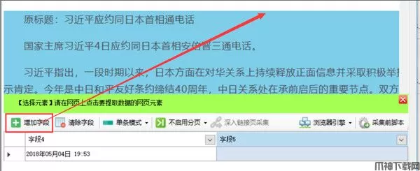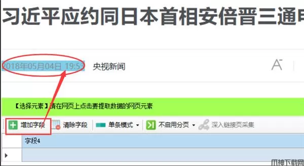 然后,我们新建一个字段,提取网页中的文章发布时间,因为文章标题在第一层列表采集里已经提取了,这里就不需要重复了,采集运行时,多个页面的字段会自动合并为一个表格数据的