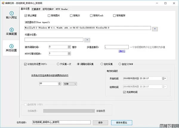 请求间隔时间:用于降低请求的频率,即降低采集速度,避免因采集太快而被封IP,如果不需要降速,可以设置为0时