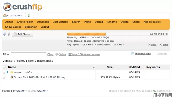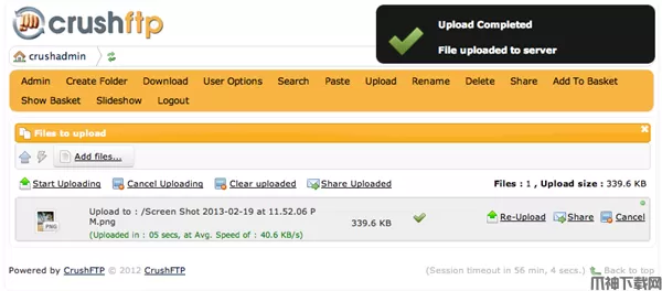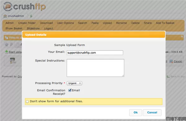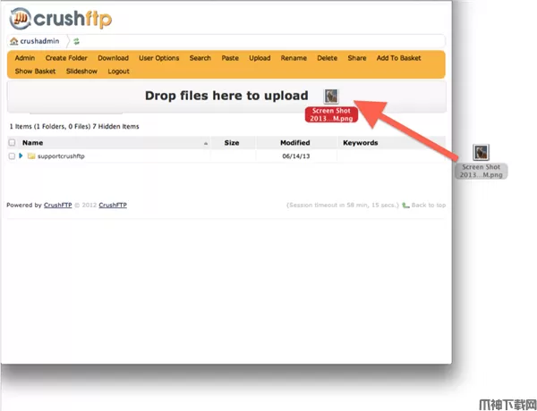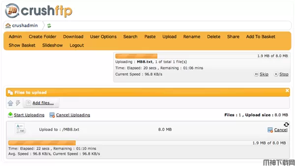 WebInterface 上传是 CrushFTP 非常直观的一部分。除部分 IE 版本外,WebInterface 支持在所有浏览器上以 HTML5 拖放方式上传文件和文件夹。