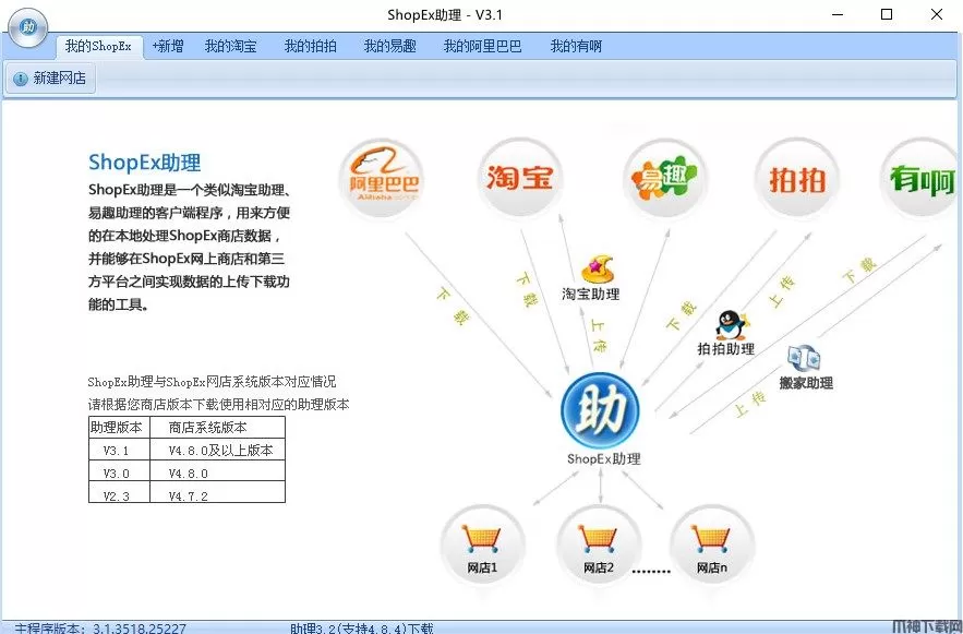 ShopEx助理官方版是一个类似淘宝助理、ebay助理的客户端程序,用来方便的在本地处理商店数据,完全在本地计算机运行,您无需打开网页就可以管理网店,不受网速影响,速度更快,使用更方便 可在本地抓取、下载淘宝、拍拍和易趣商品数据,可和淘宝、拍拍、易趣网店互通数据,商品信息一次输入,多方均可使用,避免重复劳动 使用标准windows界面,使您的操作更加快捷、便利 基于windows .Net Framework 1.1版开发,快速、稳定。快来下载试试吧!