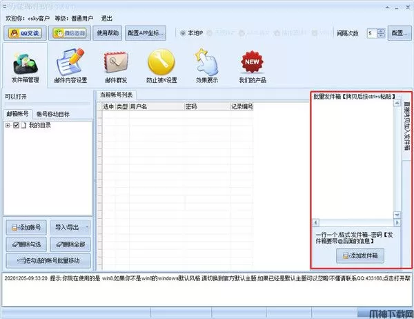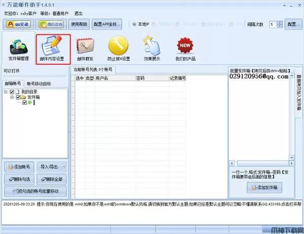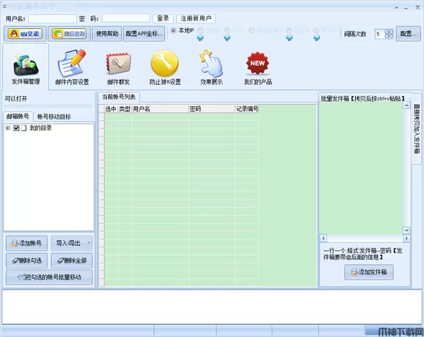 安装使用简单,发送快捷,只要点击发送,任何发件箱和收件都是全自动