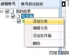 2、可以点击鼠标右键,添加发件箱分类,并可以拖动发件箱到发件箱中