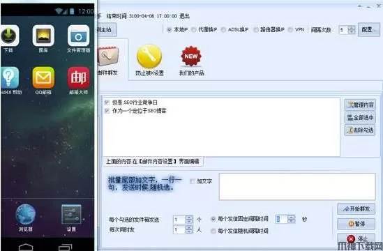 石青万能邮件助手是一款功能全面基于手机邮箱的qq邮件发送工具,软件支持使用99%以上的发件箱,能够群发国内国外邮箱,不会进垃圾箱,而且稳定高效、简单易用,还可以直接用手机模式进行发送,采用特殊的加密方式,安全高效。石青万能邮件助手绿色版通过手机端发送,从而跳过电脑端邮箱群发而造成的邮件进垃圾箱的问题,软件支持QQ邮箱,网易邮箱,等多种不同邮箱作为发件箱,是邮件群发不可缺少的软件;石青万能邮件助手绿色版支持多种模式换IP,模拟真实发送环境,防止被封,支持验证码识别,可以24小时发送,不会带来任何拖沓和滞后,有兴趣的小伙伴快来下载体验吧!