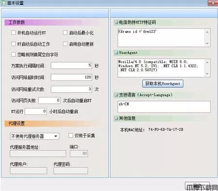 网站通过userAgent来判断当前用户使用的是什么浏览器,并根据这个浏览器能够支持的情况提供相应的功能。浏览器在访问一个网页时通常会传送一个识别字串告诉网站它是什么浏览器软件,我们访问的部分网站会对UserAgent进行限制,我们可以在基本设置中修改UserAgent,也可以点击'获取本机UserAgent'按钮获得本机的IE默认UserAgent