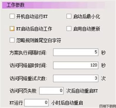 ②、ET启动后自动工作:ET启动运行后,自动执行上一次使用ET时勾选的工作方案,只有启用本项,才会自动保存当前勾选的工作方案;