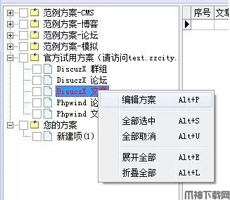 ET工作时,将首先从当前的焦点方案开始执行,即蓝色反亮显示的方案,见图示4中的‘网站-discuz 6.0(带回复)’