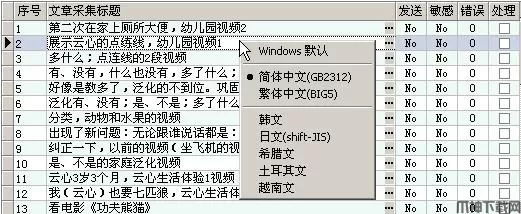 在文章列表区上点右键,将弹出编码菜单