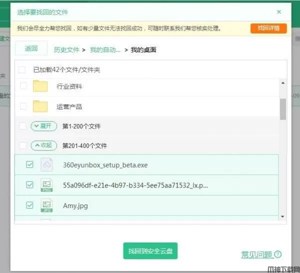 4、如果您的文件夹中的文件过多,建议您可以分组找回,每200文件为一组,分批找回,您可以点击顶部的【找回详情】选项。