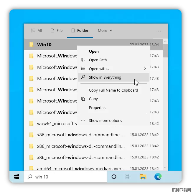 3、设置完成之后WIN系统自带的搜索,就被EverythingToolbar 替代直接在WIN系统搜索框中,就能秒搜索文件。
