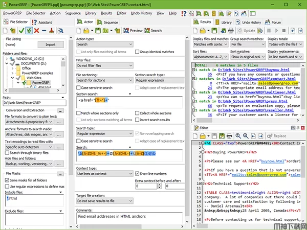 PowerGREP是一款非常专业的文件搜索编译工具,由于该工具是使用正则表达式来描述要提取的文本的形,所以被称为做正则表达式应用软件。
