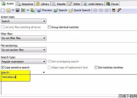 5、在search框中编写正则表达式,例如:DataBase.