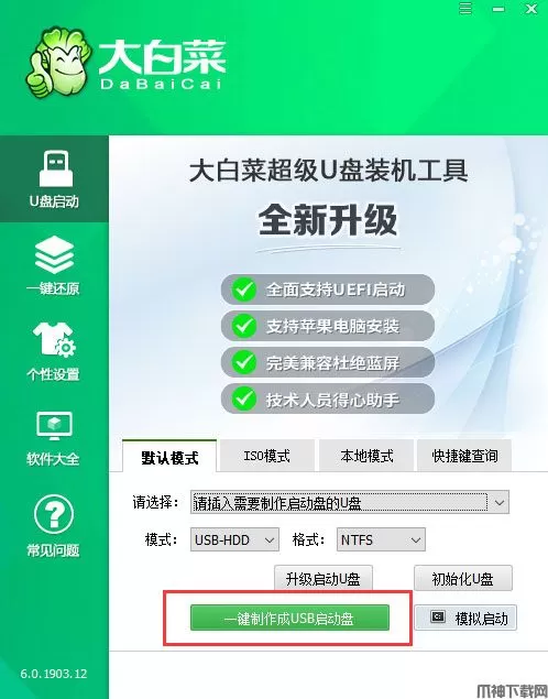 大白菜U盘启动制作工具是一款简单易用的u盘启动盘制作工具。