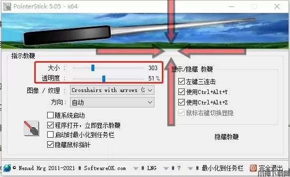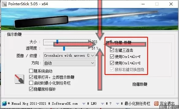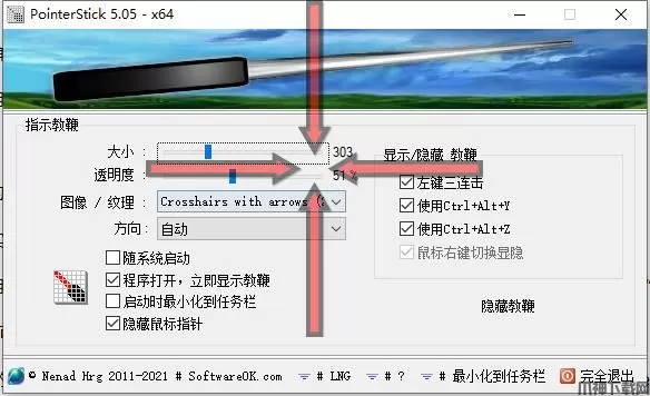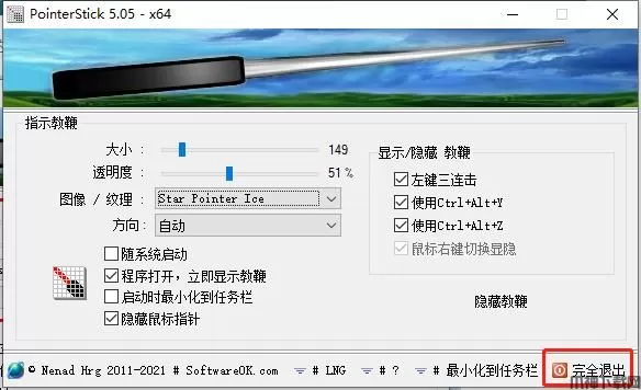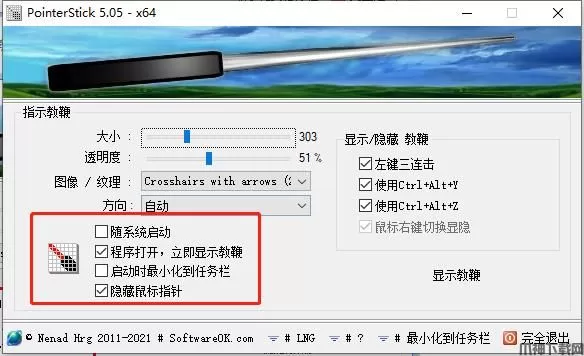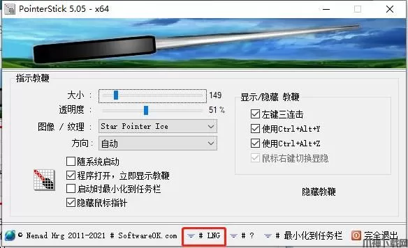 9、有多种方法可以显示或隐藏指针,以增强易用性,包括鼠标三击,鼠标右键单击系统托盘和两个热键,即Ctrl+Alt+Y和Ctrl+Alt+Z