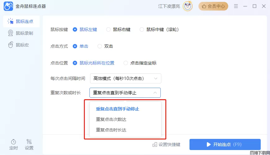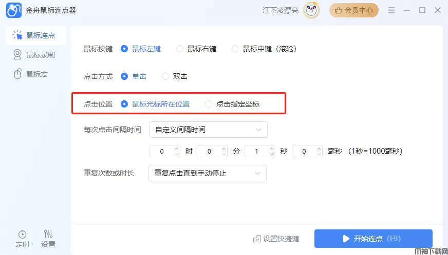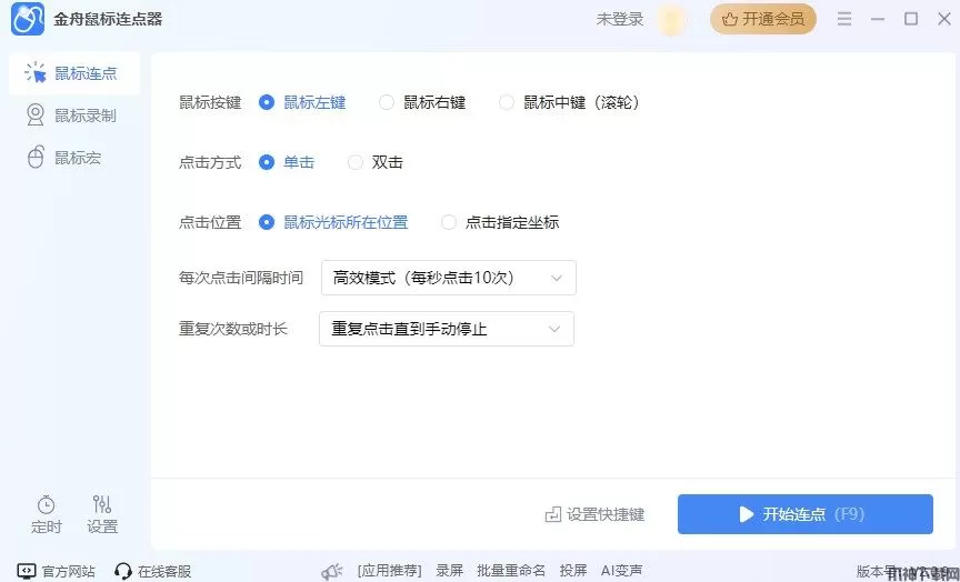金舟鼠标连点器官方版是一款简单好用的鼠标连点器软件,它主要通过用户设定的位置、频率和次数去自动执行点击动作,从而模拟出鼠标点击来实现鼠标高速点击的操作,让重复操作轻松省事,效率倍增。