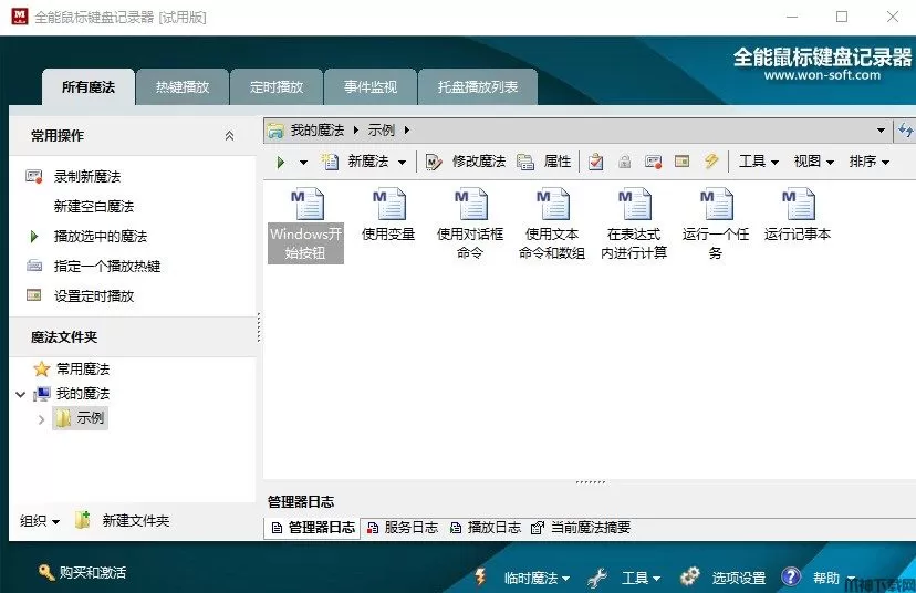 简单的工作只需要两步就可以完成 - 录制魔法脚本,播放录制好的脚本。即使对电脑操作并不 是很熟悉的人,也可以通过录制+播放的方式快速使用软件。