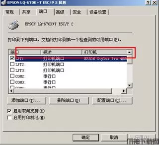 2)如果打印机使用并口连接,请在“LPT1”端口前打上“√”。