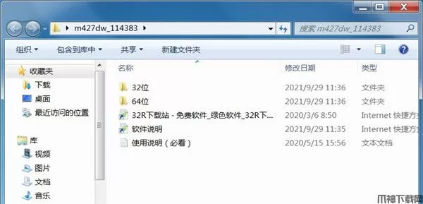 1、从本站下载惠普m427dw驱动压缩包后,将其解压后即可看到32/64位的驱动适配版本;
